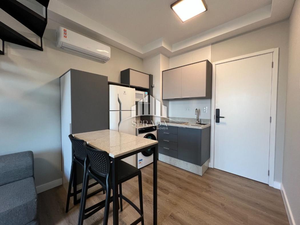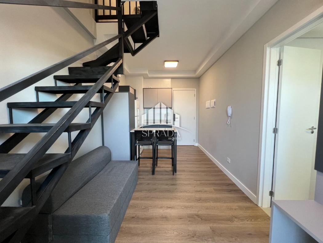 Studio com dois pavimentos, novo, na região central de Curitiba, em andar alto e perto de tudo que você precisa!