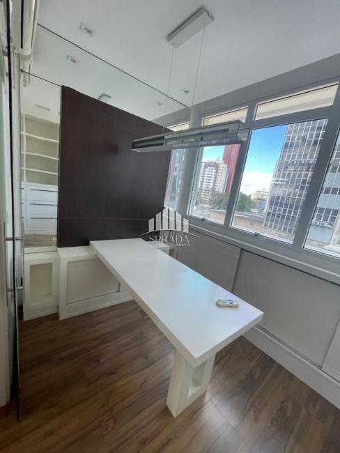 EXCELENTE SALA COMERCIAL AMPLA POIS SAO 2 CONJUNTOS QUE FORAM UNIDOS - MOBILIADO - AR CONDICIONADO EM TODOS OS AMBIENTES - HALL DE ENTRADA - BANHEIRO MASCULINO E FEMININO - COZINHA - AREA DE APOIO - SALA AMPLA A ESQUERDA - SALA AMPA A DIREITA - ESCRITORI PRIVATIVO - SALA DE REUNIOES - PISO LAMINADO - PROJETO LUMINOTECNICO - AR CONDICIONADO - 1 VAGA DE GARAGEM - PREDIO COM TOTAL SEGURANCA COM PORTARIA 24 HORAS - SALA DE REUNIOES NO PREDIO E SALAO DE FESTAS - LOCAL PRIVILEGIADO COM BOA ESTRUTURA E DE ALTO PADRAO