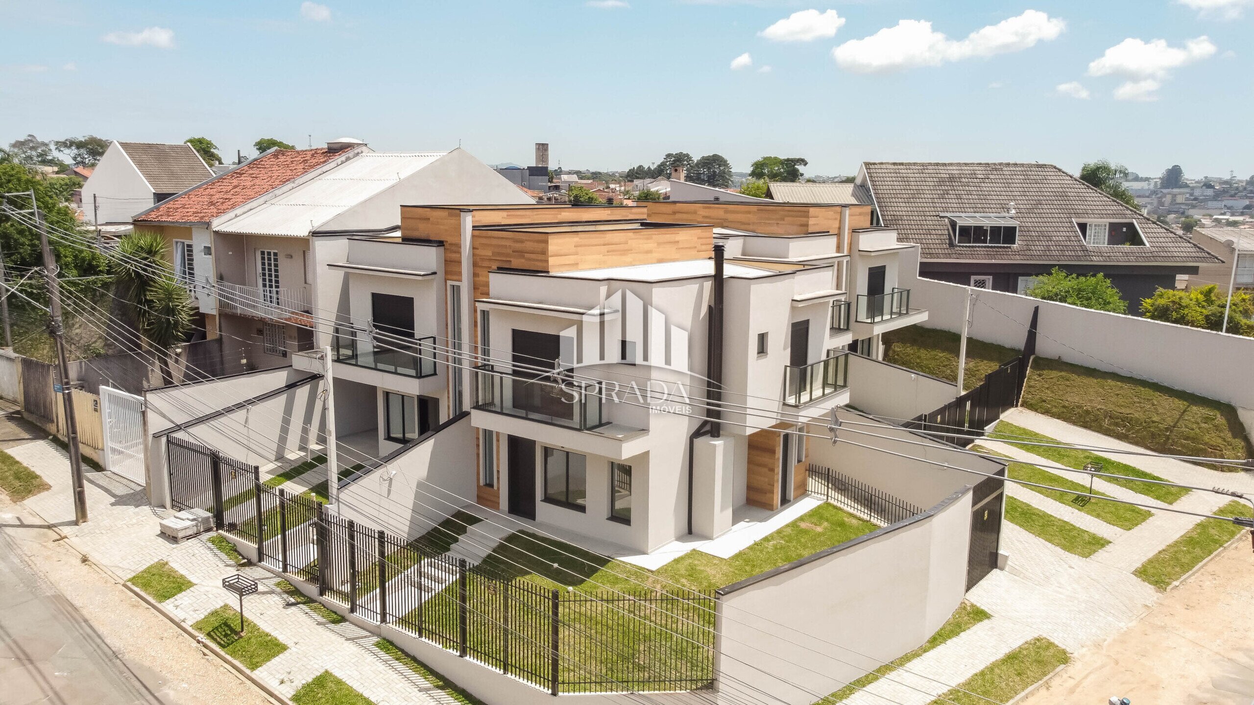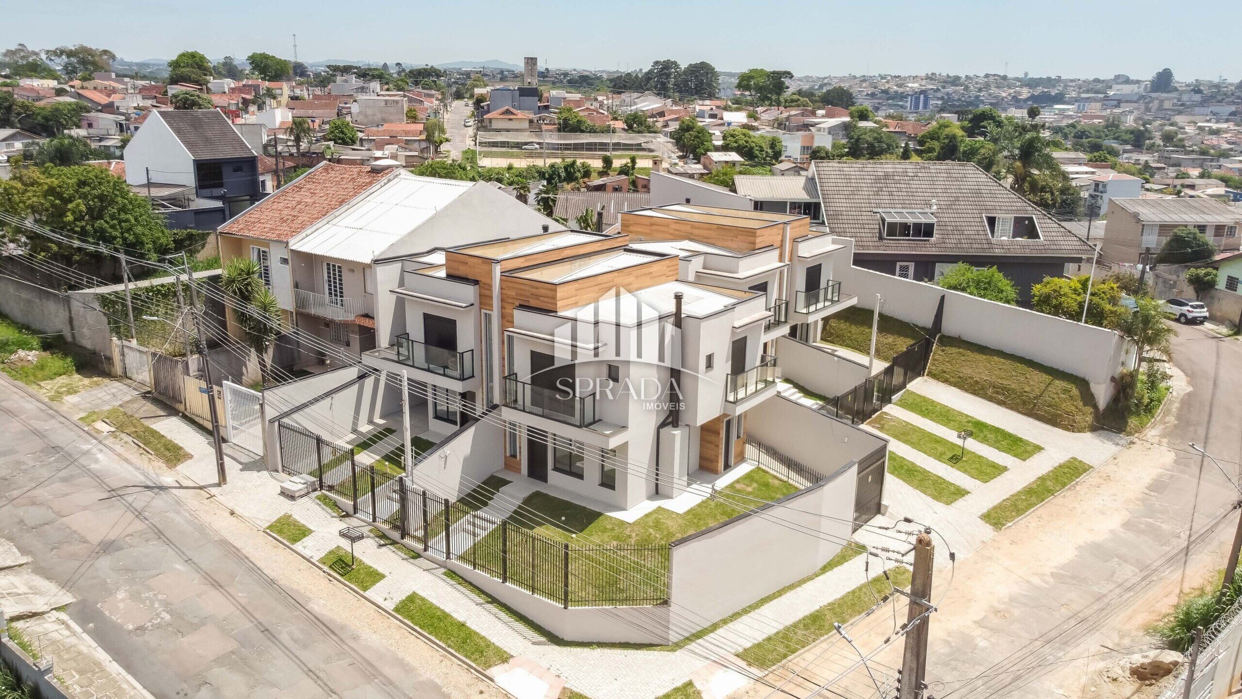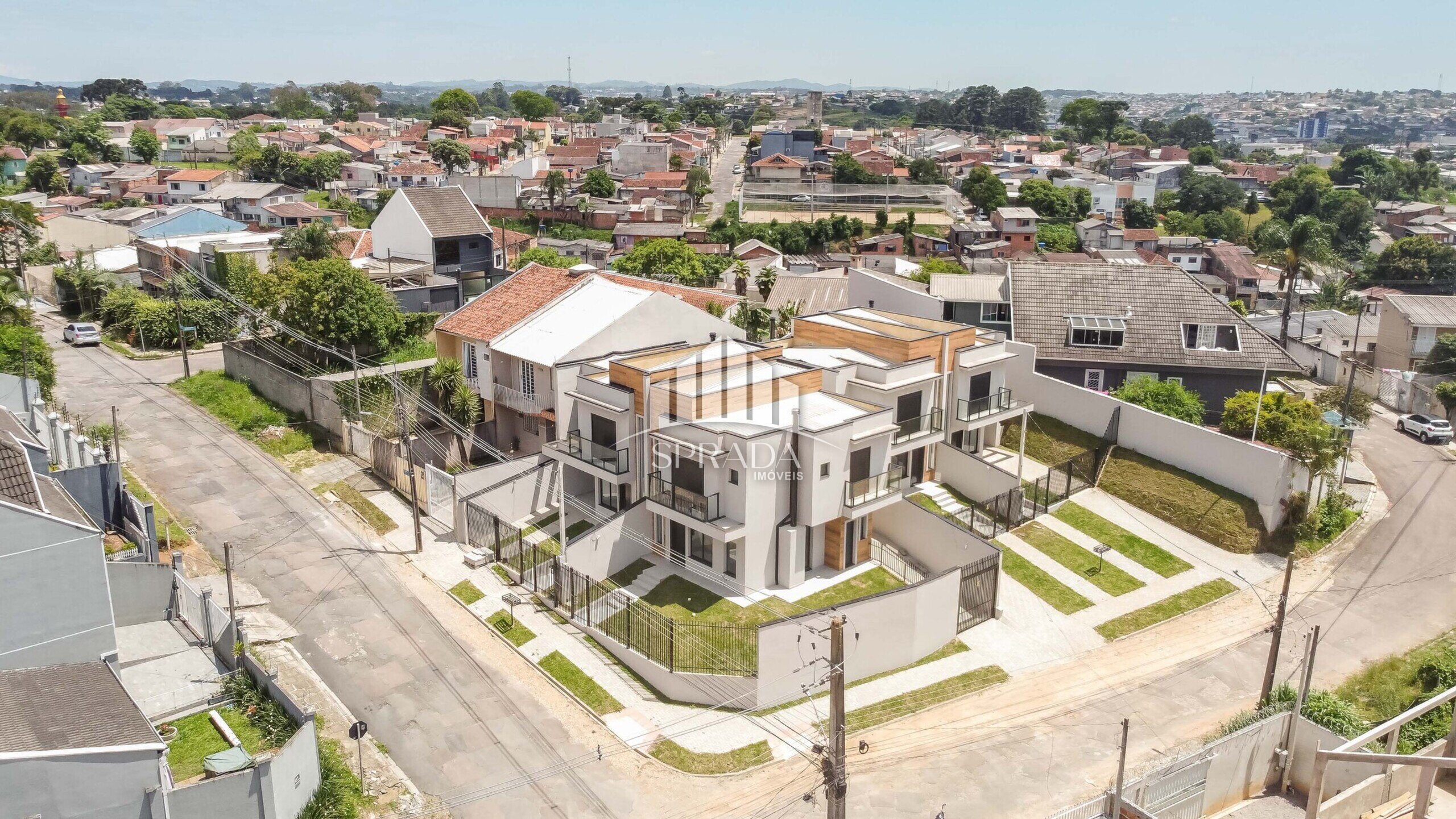 Conjunto de sobrados em um terreno de esquina localizado no bairro Atuba, ideal para quem busca conforto e qualidade de vida em um ambiente tranquilo e acolhedor.