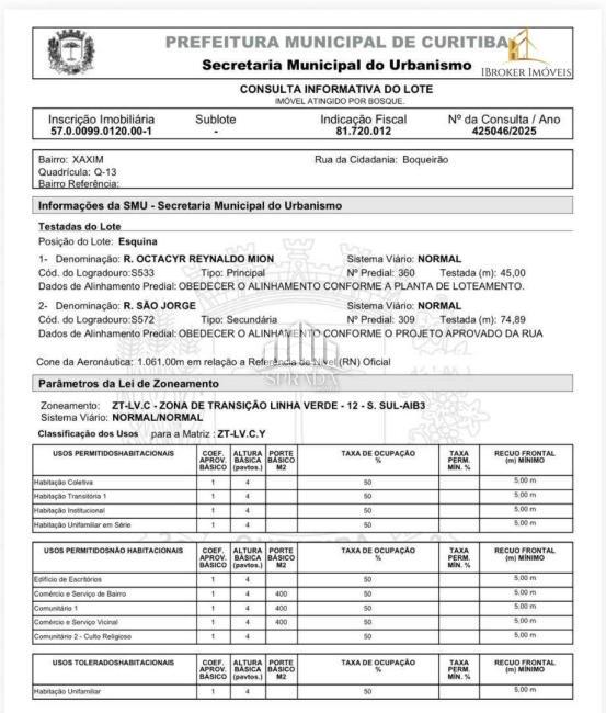Zoneamento: ZT-LV.C - ZONA DE TRANSIÇÃO LINHA VERDE - 12 - S. SUL-AIB3